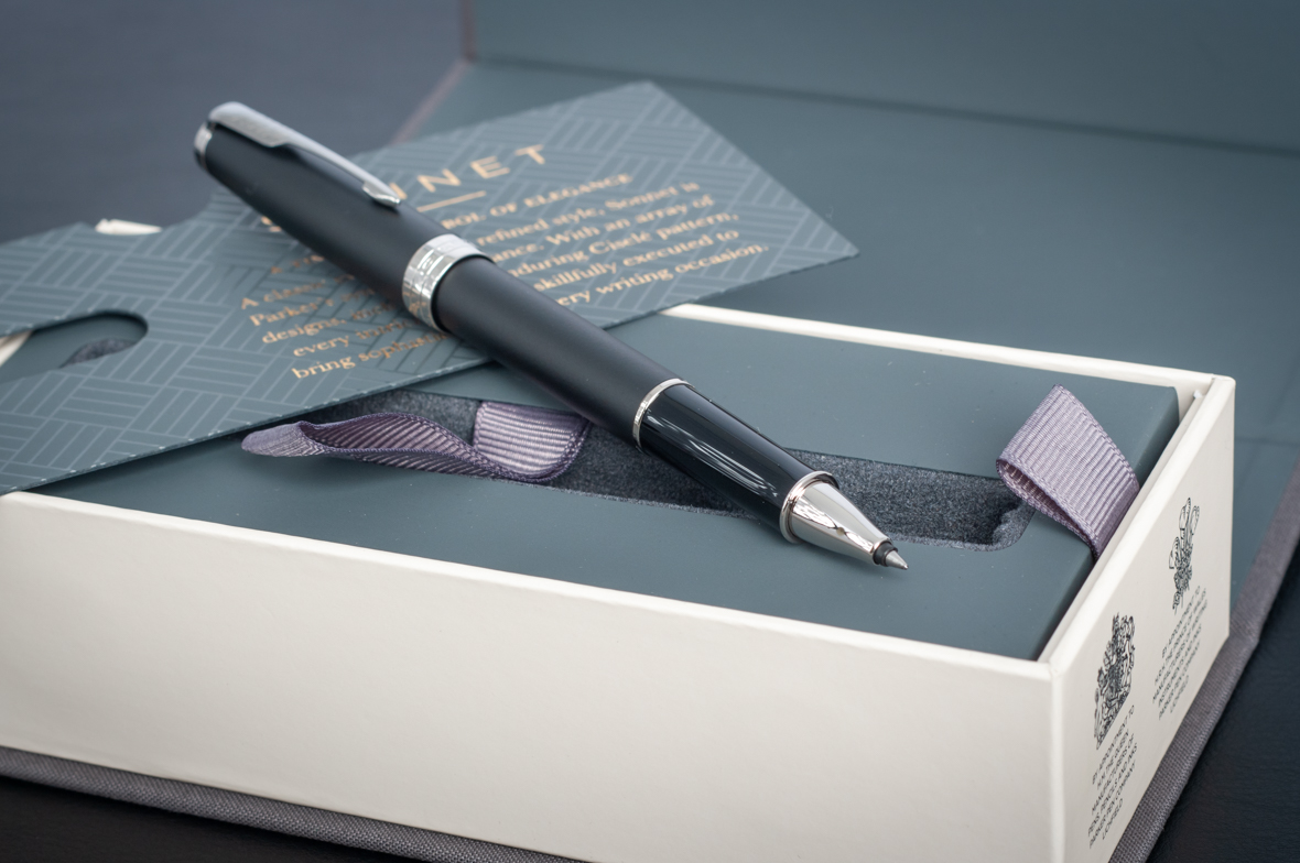 Ручка роллер Parker Sonnet Matte Black CT от официального дилера Parker в Перми. Вы можете дополнительно заказать гравировку, которая подчеркнет Вашу оригинальность и придаст памятность статусному подарку. Все ручки Паркер поставляются в фирменном футляре.
